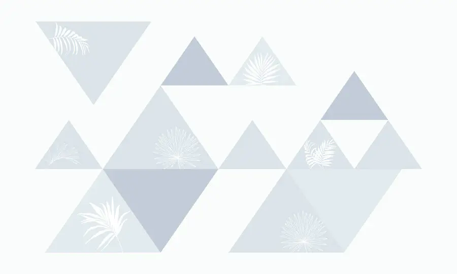 Fototapet Triunghiuri albe și albastre cu frunze
