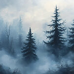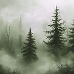 Fototapet Pădure cețoasă cu copaci