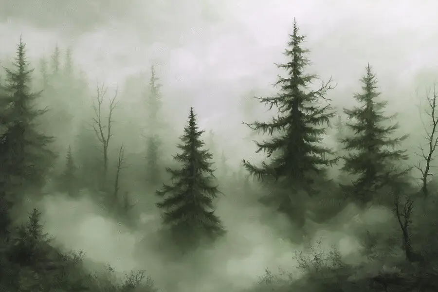 Fototapet Pădure cețoasă cu copaci