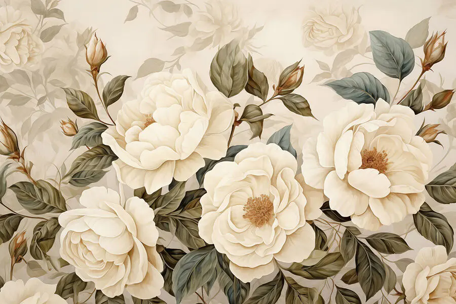 61.67 lei37.00 leiFototapet Perete alb cu flori și frunze