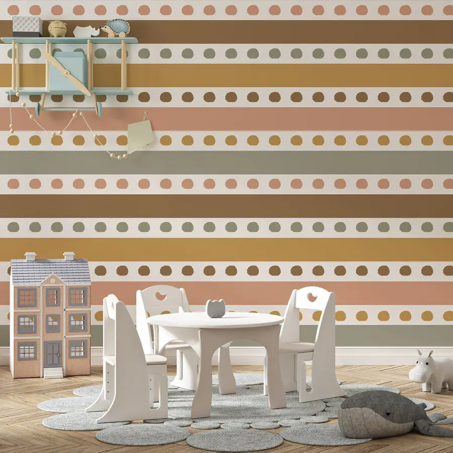 Imaginați-vă că pășiți într-o cameră care pare plină de culoare. Această pictură murală, un dans jucăuș al punctelor în tonuri calde de pământ, adaugă un strop de bucurie și personalitate oricărui spațiu. Este ca și cum ai avea la tine un prieten vesel - cineva care îți înseninează mereu ziua. Dungile moi și modelele pline de viață o fac perfectă pentru un living confortabil sau un birou excentric. Imaginați-vă sorbindu-vă cafeaua de dimineață, înconjurați de aceste puncte vesele, și simțiți cum vi se ia o greutate de pe umeri. Nu este doar decor; este o experiență care face fiecare privire puțin mai fericită. Haideți să adăugăm puțină distracție pereților!