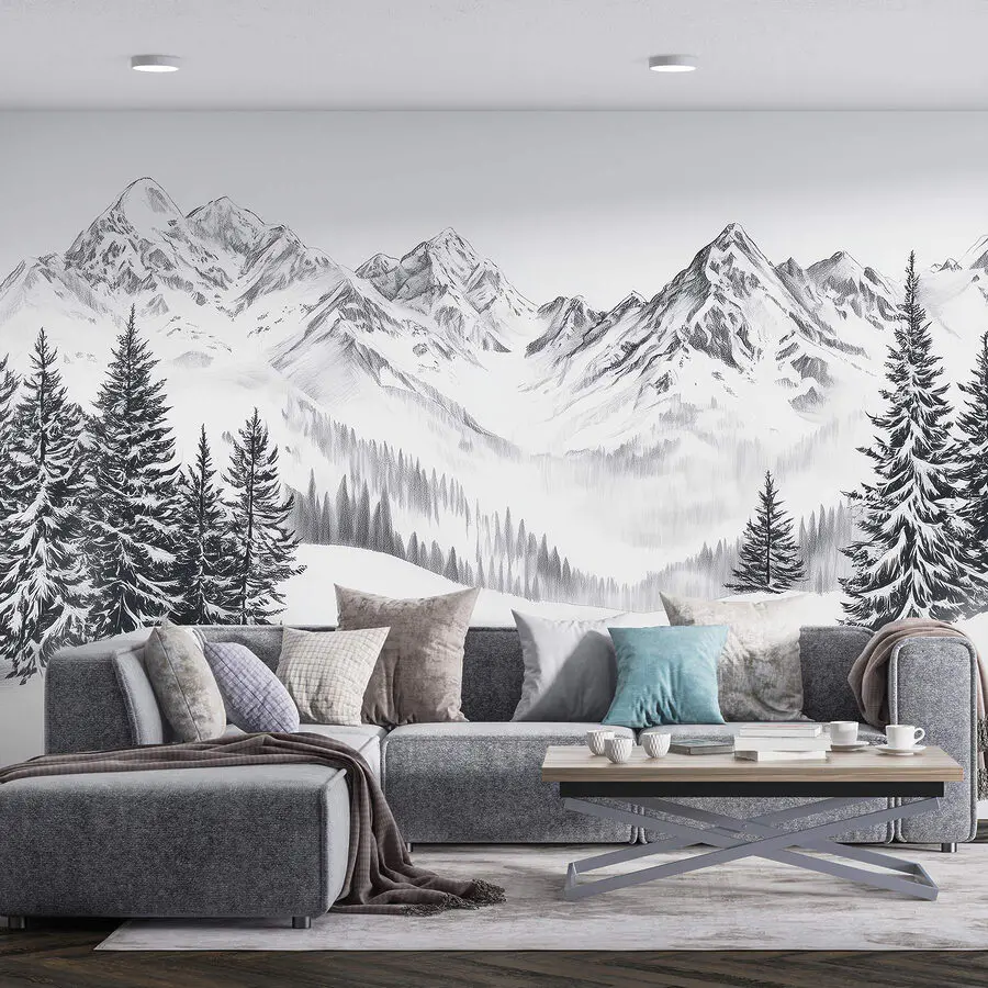 Fototapet Desenul unui lanț muntos înzăpezit