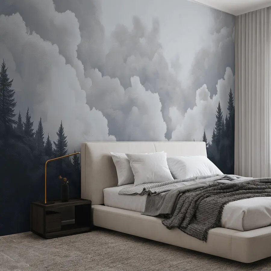 Transformați-vă spațiul cu pictura murală încântătoare "Grup de copaci și nori". Această piesă uimitoare surprinde esența naturii, cu conifere maiestuoase întinzându-se spre nori pufoși, de vis. Imaginați-vă sorbindu-vă cafeaua de dimineață, simțindu-vă ca și cum ați fi cuibărit într-o pădure senină, dar cu confortul de acasă. Este ca și cum ai aduce marea natură înăuntru, fără gândacii enervanți! Perfectă pentru un living confortabil sau un dormitor liniștit, această pictură murală invită la vibrații calme și o notă de aventură. În plus, fiecare privire la acești copaci ar putea declanșa un mic vis cu ochii deschiși - cine nu și-ar dori asta? Îmbrățișați frumusețea naturii în fiecare zi!