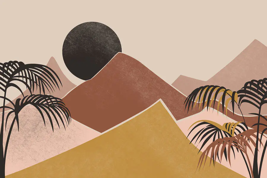 Fototapet Peisaj cu palmieri și munți