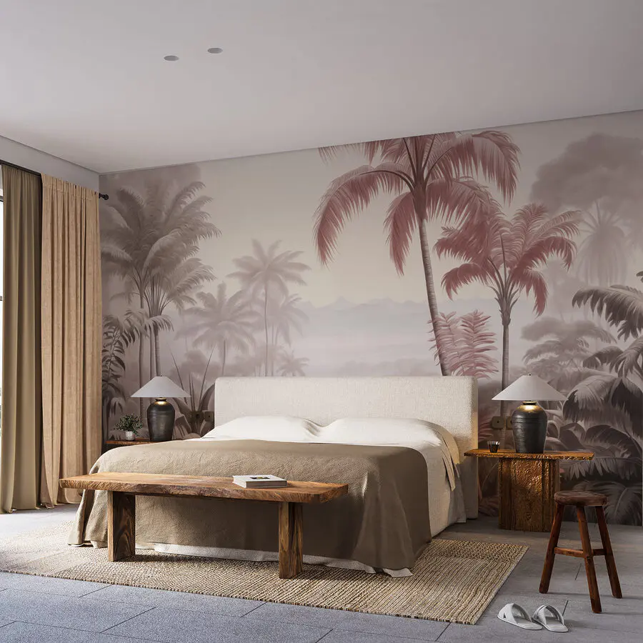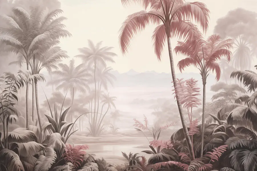 Fototapet Peisaj cu palmieri și munți