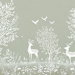 Fototapet Cerb alb și păsări într-o pădure
