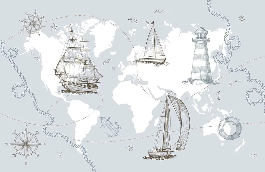 Fototapet Harta lumii cu diferite nave
