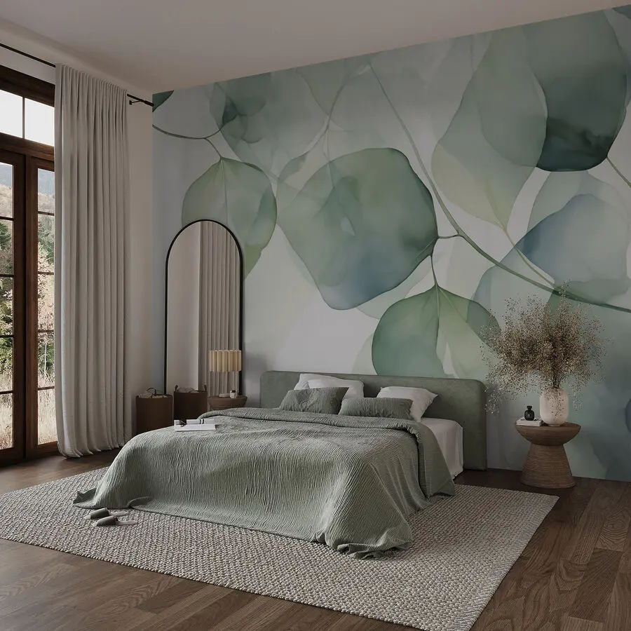 Transformarea unui spațiu tocmai a devenit visătoare cu "Frunze delicate în nuanțe pastelate moi". Această superbă pictură murală vă drapează pereții în verde liniștitor și albastru blând, care se simt ca o briză răcoroasă ce se plimbă printr-o grădină liniștită. Imaginați-vă că vă sorbiți cafeaua de dimineață în timp ce priviți aceste minunății în acuarelă, dând acel mic imbold de bucurie pentru a începe ziua. Perfect pentru orice cameră, este ca și cum ai avea natura chiar în casa ta - nu este nevoie de un deget verde, doar o dragoste pentru vibrații senine. În plus, gândiți-vă doar la momentele Instagram. Prietenii vor spune: "Aia e o grădină sau sufrageria ta?"