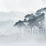 65.98 lei39.59 leiFototapet Acuarelă de copaci și păsări care zboară peste o pădure cețoasă