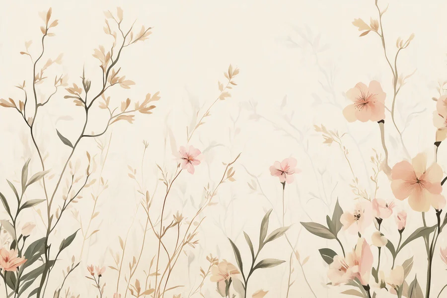Fototapet Wallpaper cu flori și frunze