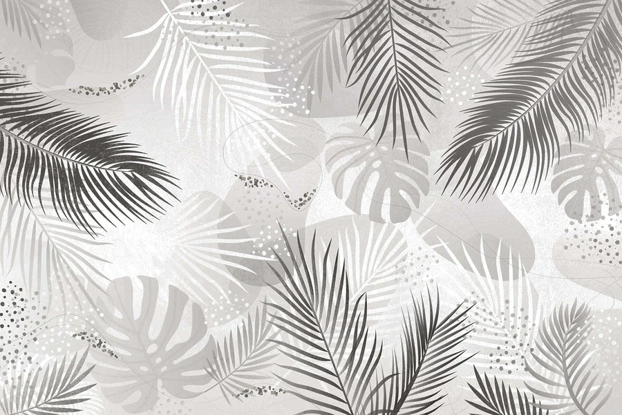 Fototapet Fundal gri și alb cu frunze
