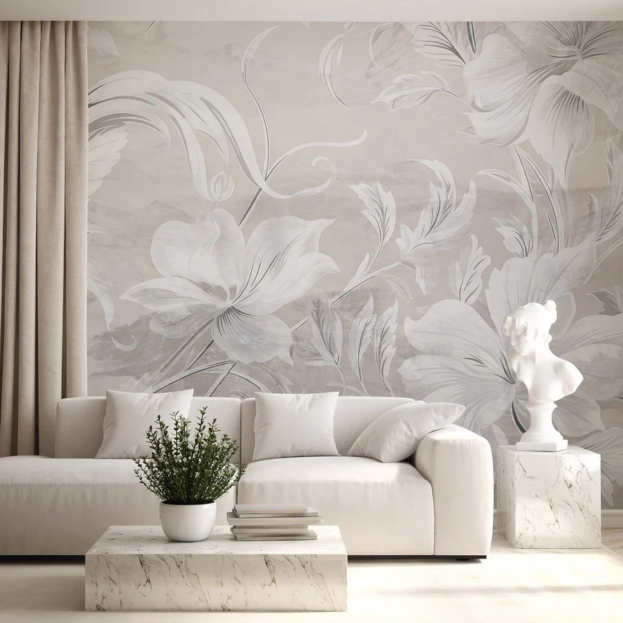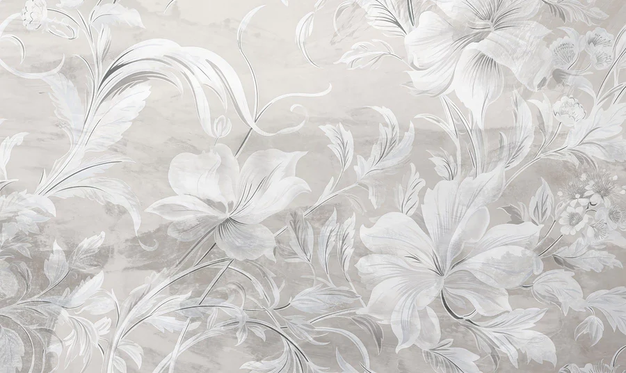 Fototapet Model floral alb și gri
