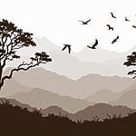 Fototapet Păsări care zboară deasupra unui lanț muntos