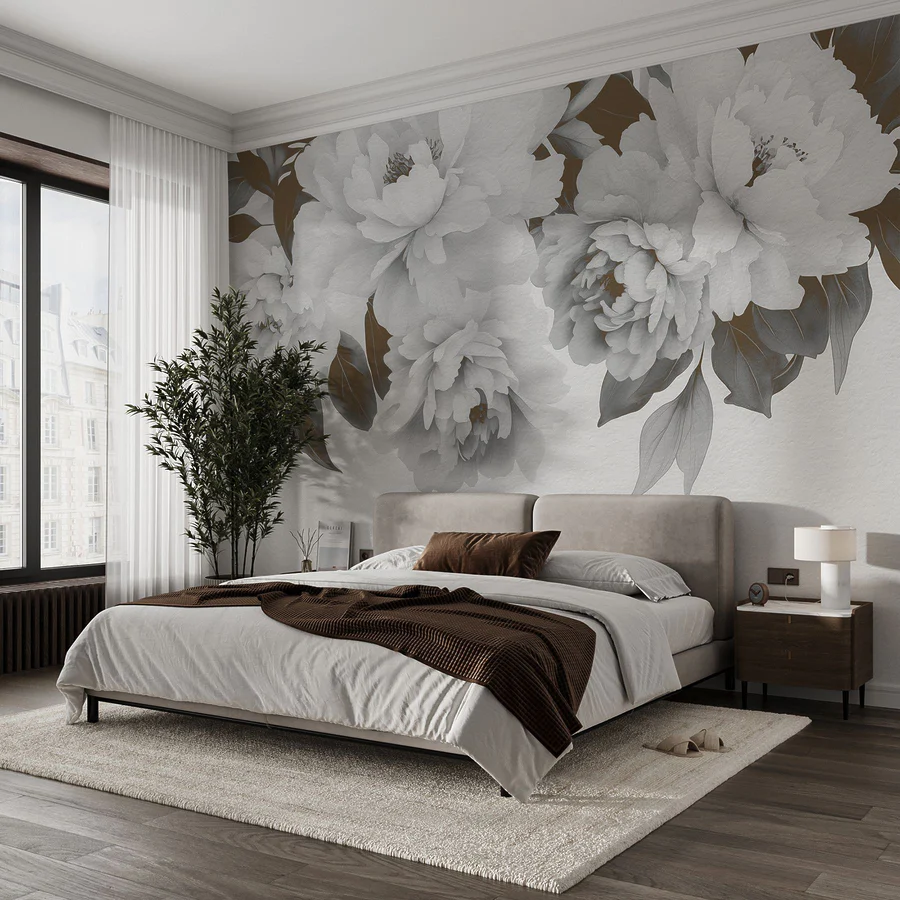 63.91 lei35.15 leiFototapet Perete alb cu flori și frunze