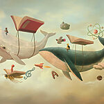 Scufundați-vă într-o lume capricioasă cu această pictură murală a doi giganți blânzi care zboară printre nori, fiecare purtând o bibliotecă pe spate. Imaginați-vă bucuria unui copil, cu ochii mari de uimire, explorându-și imaginația pe spatele unei balene magnifice. Culorile vii și detaliile jucăușe invită la povești pline de aventură - fie că este vorba de un tânăr explorator și creionul său de încredere care se întrec pe cer, fie de creaturi de vis care plutesc în derivă. Perfectă pentru camera unui copil sau pentru orice spațiu care ar avea nevoie de un strop de magie, această pictură murală nu este doar decor; este o poartă către creativitate. Imaginați-vă: fiecare privire la aceste balene fermecătoare ar putea declanșa o nouă poveste sau ar putea face pe cineva să viseze cu ochii deschiși la albastrul oceanului. Este mai mult decât artă; este o experiență. Simțiți cum inspirația plutește în voi!