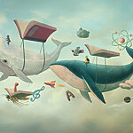 Fototapet Balenă și balenă cu cărți și o carte pe ele