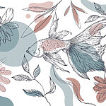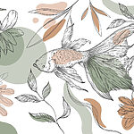 Fototapet Pește și plante pe un fundal alb