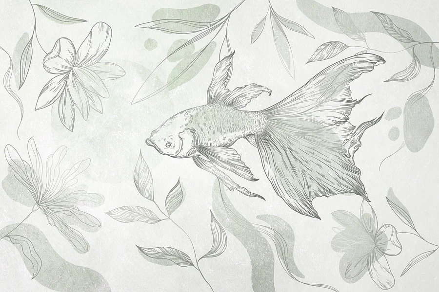 Fototapet Pești și plante pe un perete