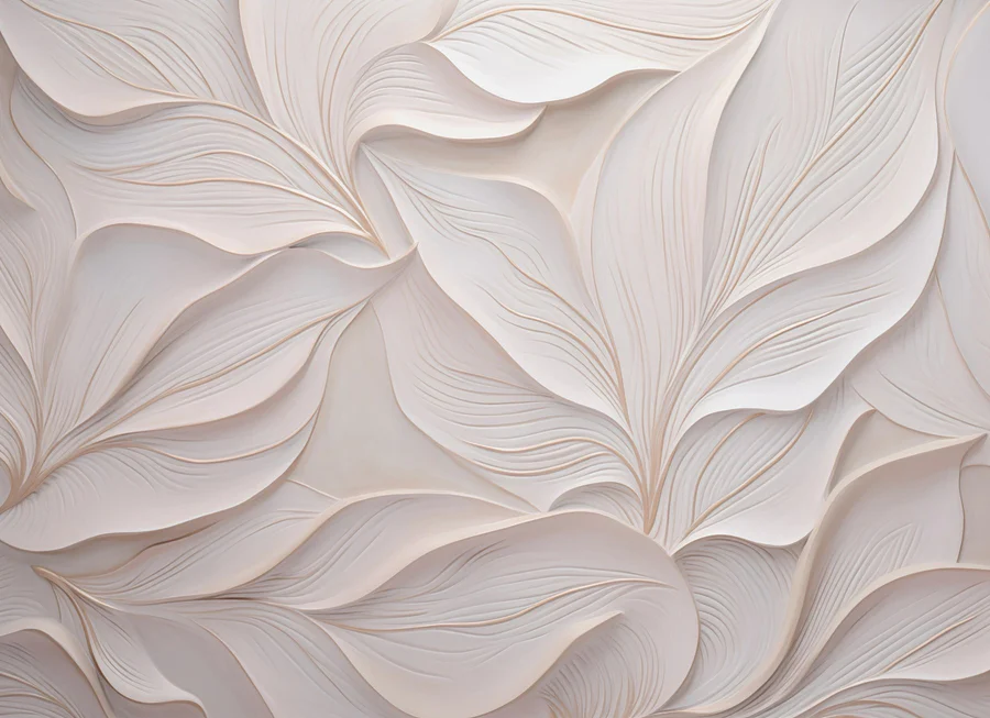 Fototapet Perete alb cu frunze albe