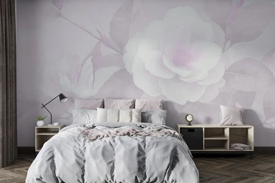 61.67 lei37.00 leiFototapet Perete alb cu flori și frunze