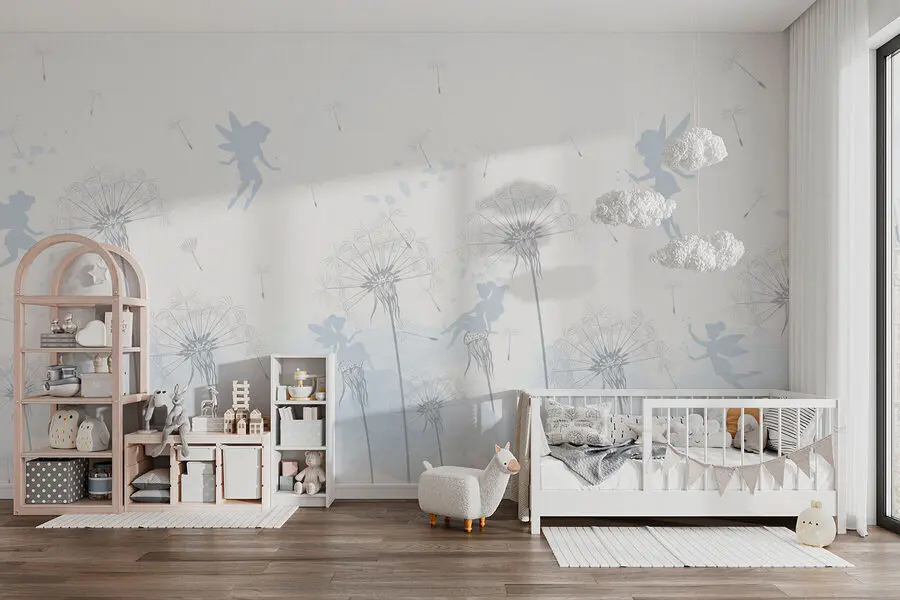 Fototapet O păpădie cu zâne care zboară în aer