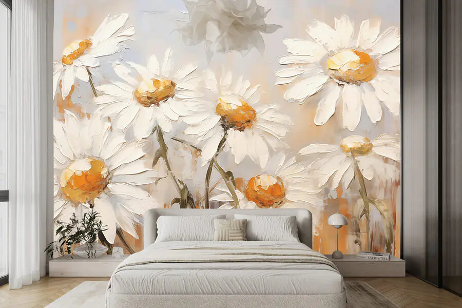 63.91 lei35.15 leiFototapet Un grup de flori albe cu centrul galben și frunze verzi