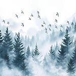 Fototapet Păsări care zboară deasupra unei păduri