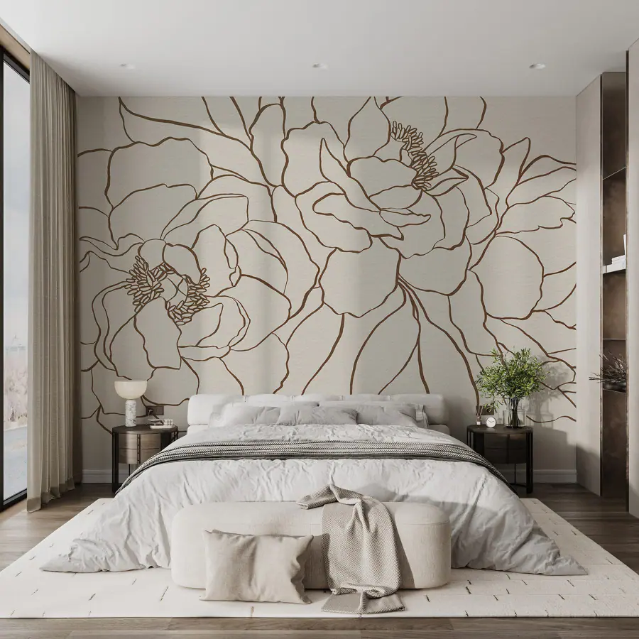 Transformă-ți spațiul cu această pictură murală uimitoare cu flori delicate pe un fundal alb moale. Este ca și cum ai avea o bucățică de natură chiar în camera ta de zi. Imaginați-vă sorbindu-vă cafeaua de dimineață înconjurat de bujori eleganți - există ceva magic în legătură cu desenele florale care ridică spiritul. Sunt primitoare, liniștitoare și pur și simplu minunate. Perfect pentru a adăuga o notă de fantezie sau un strop de rafinament în orice cameră. În plus, nu este nevoie de udare! Această pictură murală aduce toată frumusețea, fără polen. Cine ar fi crezut că un perete poate fi atât de viu? Este o îmbrățișare florală pentru casa ta.