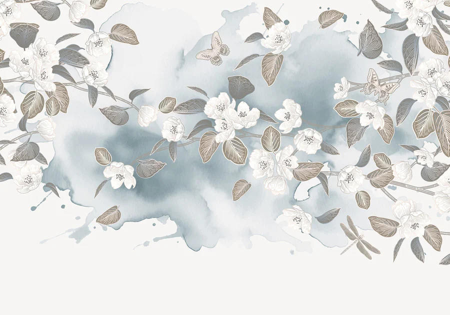 64.89 lei38.94 leiFototapet Perete alb cu flori și frunze