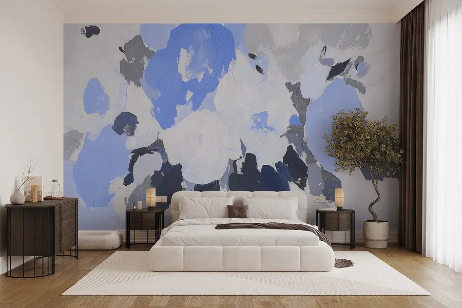 Fototapet Pictura de flori în albastru și gri