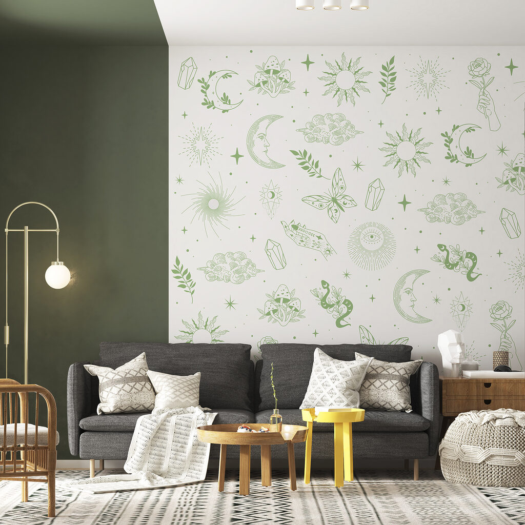 Dacă doriți să aplicați un design de tapet pe mai mulți pereți, măsurați ambii pereți și adunați lățimile lor. Nu este nevoie să comandați două panouri separate.