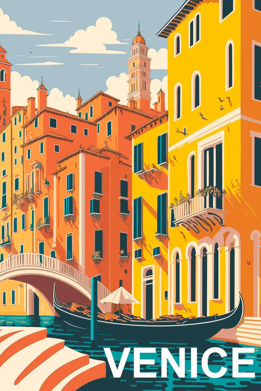 101.91 lei56.05 leiTablouri Acuarelă a unui canal cu bărci și clădiri