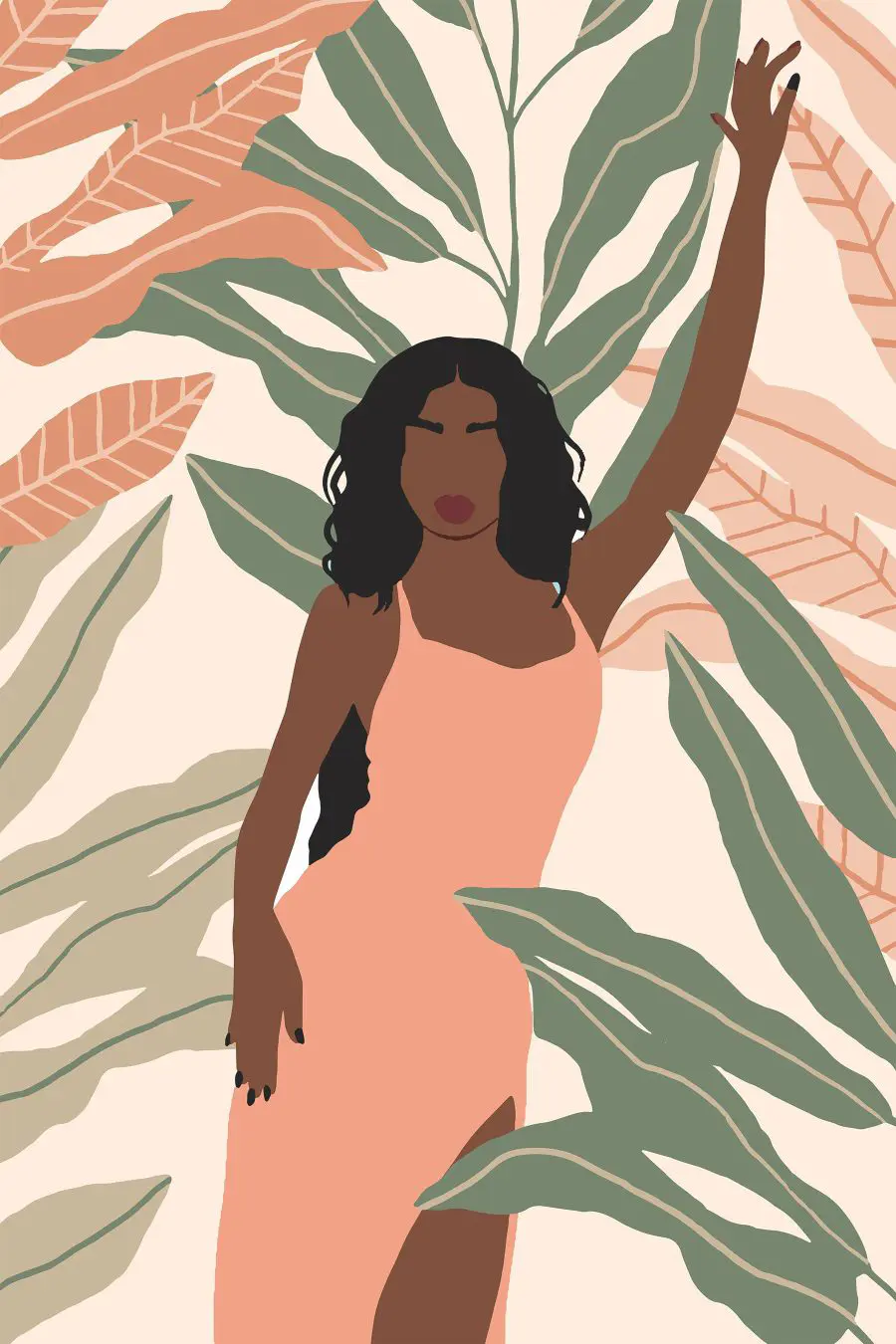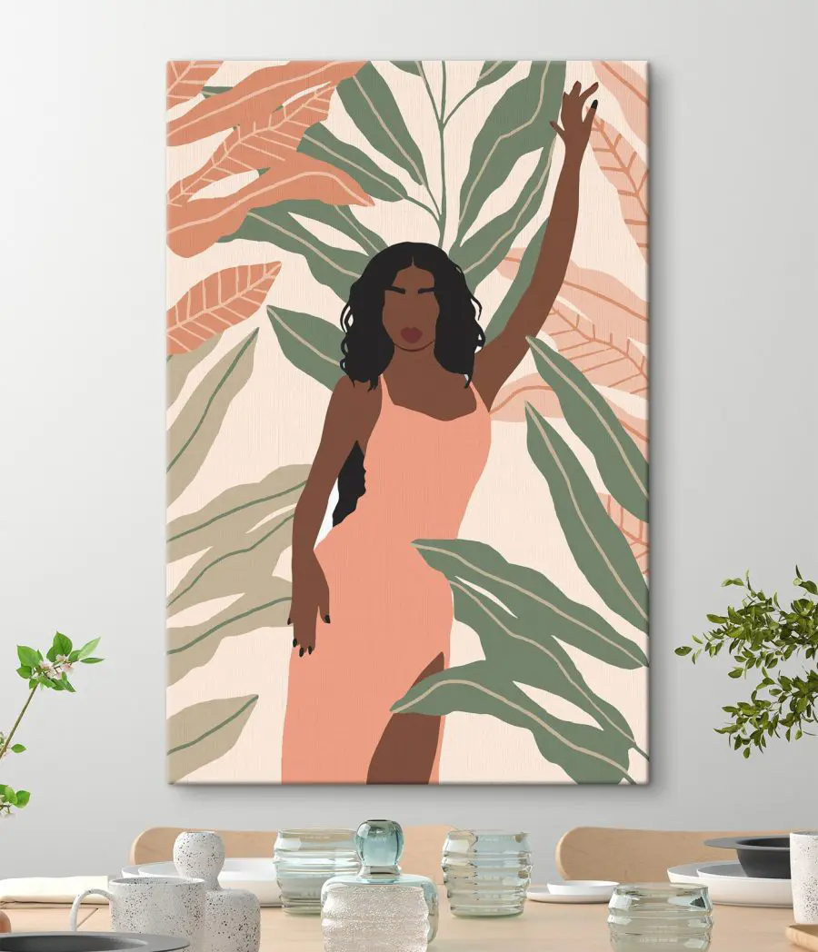 98.33 lei59.00 leiTablouri Femeie cu părul lung și un fundal verde cu frunze