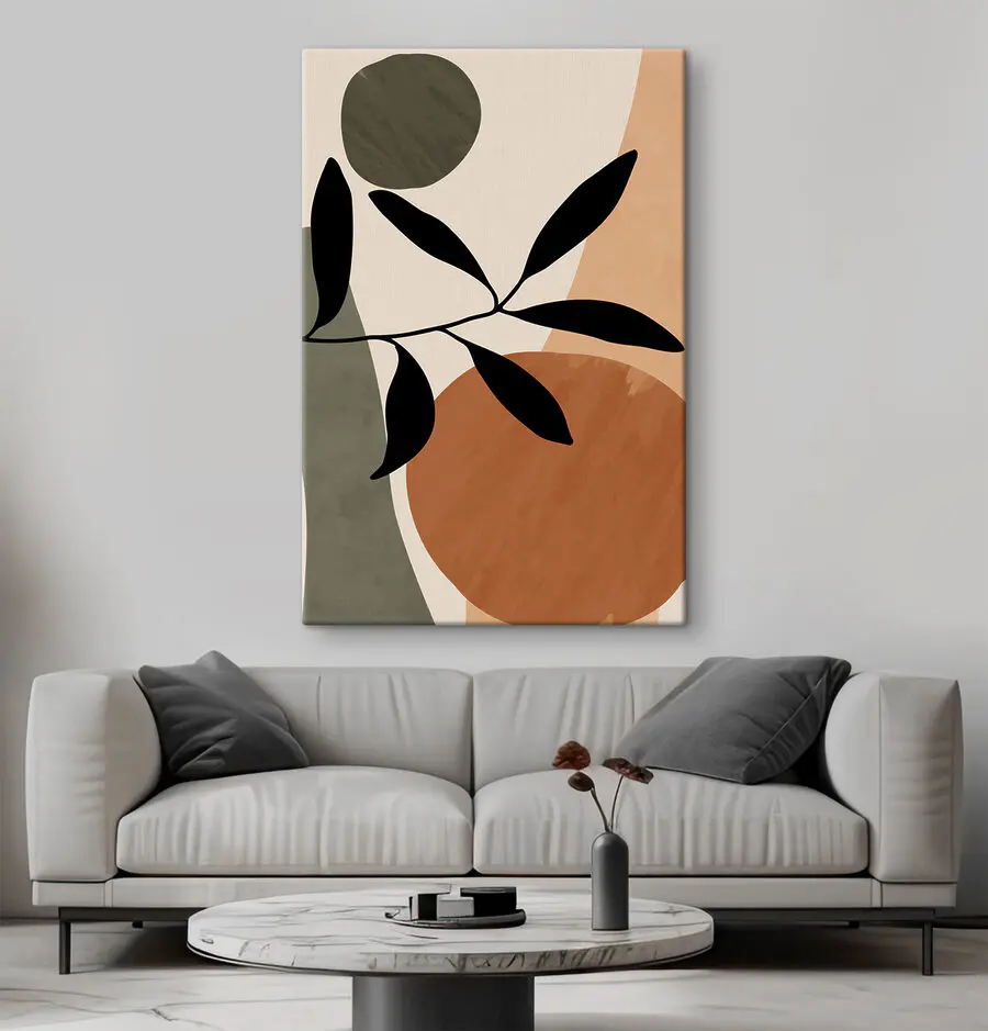 Tablouri O frunză neagră pe o creangă cu cercuri și cercuri