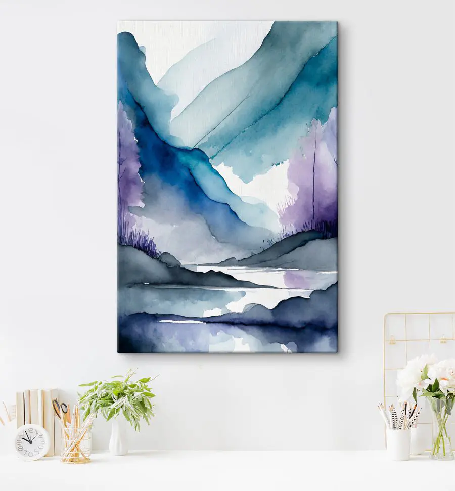 Transformați un perete plictisitor într-o evadare senină cu această imprimare pe pânză în acuarelă cu munți liniștiți, copaci și un râu șerpuitor. Este ca și cum ai aduce o bucată de natură în casă - perfect pentru acele zile în care marea natură se simte puțin prea departe. Imaginați-vă că vă relaxați cu o ceașcă de ceai în timp ce lumina soarelui dansează pe pânză, creând o atmosferă primitoare. Nuanțele blânde șoptesc relaxare, îndepărtează stresul și stârnesc visuri cu ochii deschiși despre drumeții pașnice. Ideală pentru camera de zi sau pentru un dormitor liniștitor, s-ar putea să vă stârnească conversația preferată!