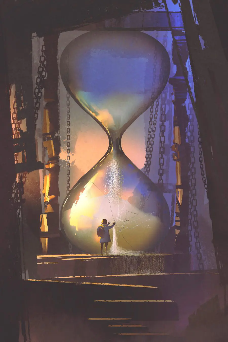Tablouri Persoană în picioare într-o clepsidră mare