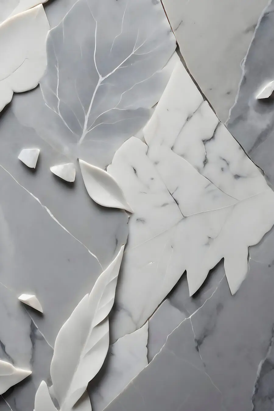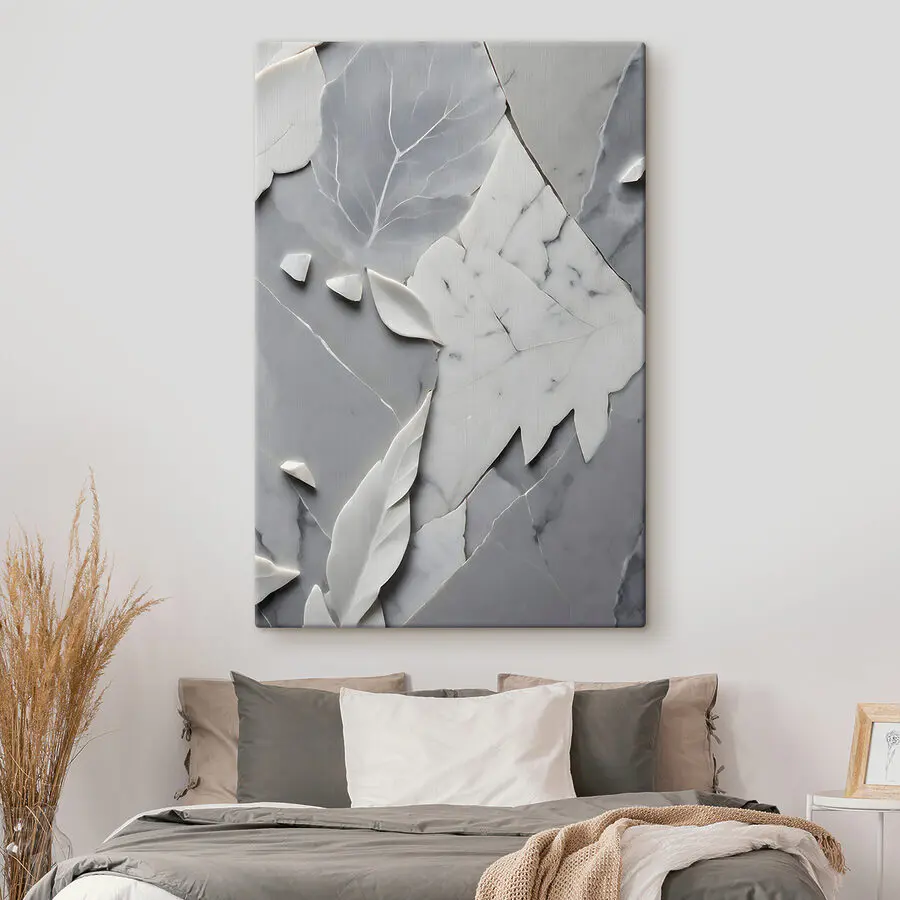 Tablouri O suprafață de marmură albă și gri cu frunze
