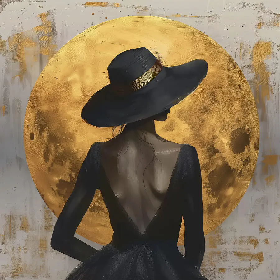 Tablouri Femeie în rochie neagră și pălărie