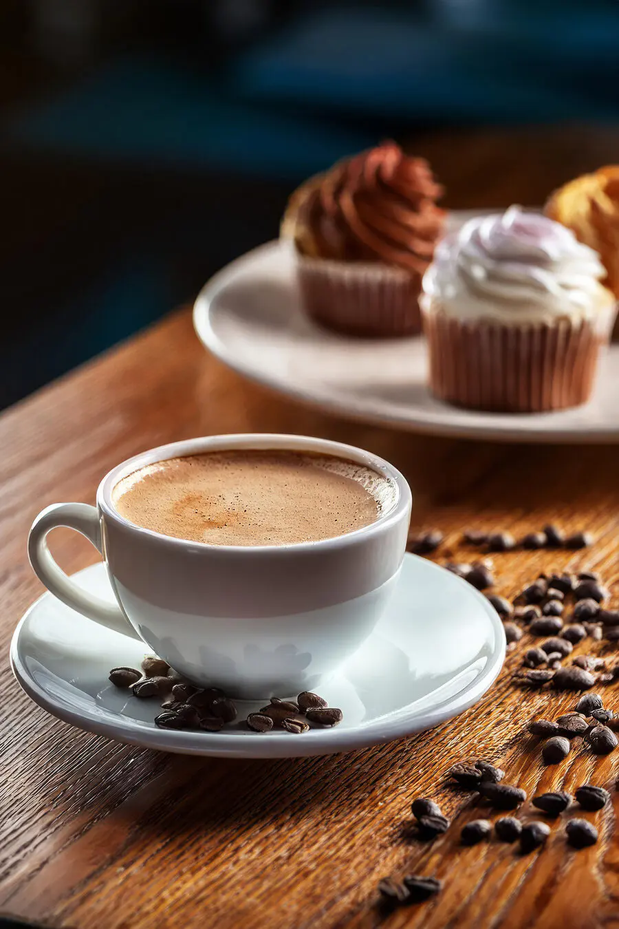 Tablouri Ceașcă de cafea și cupcakes pe o masă