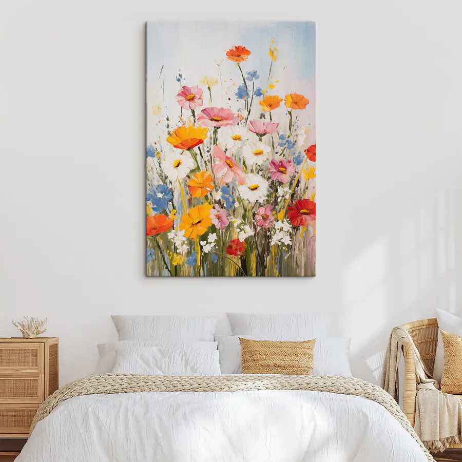 Imaginați-vă acest lucru: un câmp de flori sălbatice în plină înflorire capturat pentru totdeauna pe pânză. "Tablouri s40504" este ca o gură de aer proaspăt - aproape la propriu! Aceste culori vii și petale jucăușe înveselesc orice cameră, atrăgând privirea și stârnind bucurie. Gândiți-vă la el ca la un buchet permanent, fără a fi nevoie de udare. Perfect pentru acele zile mohorâte sau când aveți nevoie de o explozie de frumusețe naturală în interior. Nu este prea zgomotoasă, doar suficient de vioaie pentru ca spațiul tău să pară mai viu. Agățați-l în sufragerie, în dormitor, chiar și pe hol... veselie instantanee!