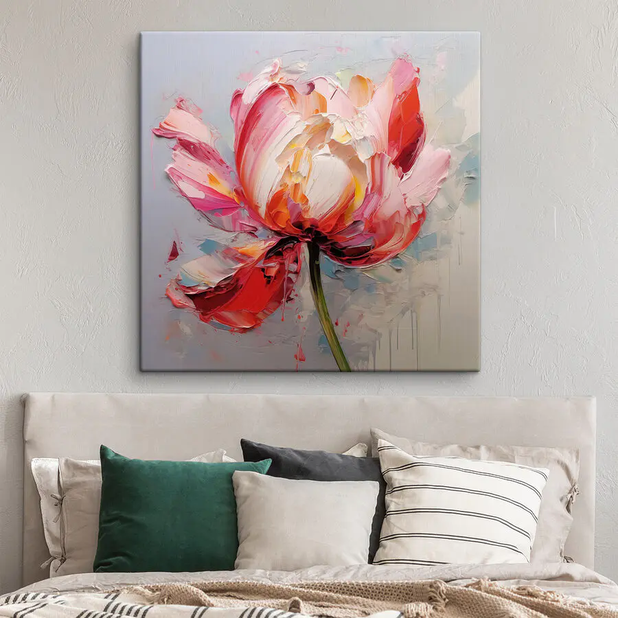 Înveseliți orice cameră cu această imprimare uimitoare pe pânză a unei flori care radiază de bucurie. Este ca și cum ai aduce un pic de natură chiar în spațiul tău de locuit - un instantaneu al fericirii grădinii, fără a mai fi nevoie să cureți sau să uzi! Imaginează-ți că treci pe lângă ea, arunci o privire peste aceste culori îndrăznețe și dintr-o dată camera se simte vie. Nuanțele vibrante ale acestei opere de artă dansează pe pânză, făcând imposibil să nu zâmbești. Perfectă pentru un colțișor confortabil sau deasupra unei mese de luat masa, aceasta adaugă fără efort un strop de căldură. Fiecare privire amintește că frumusețea înflorește pretutindeni, chiar și în interior.