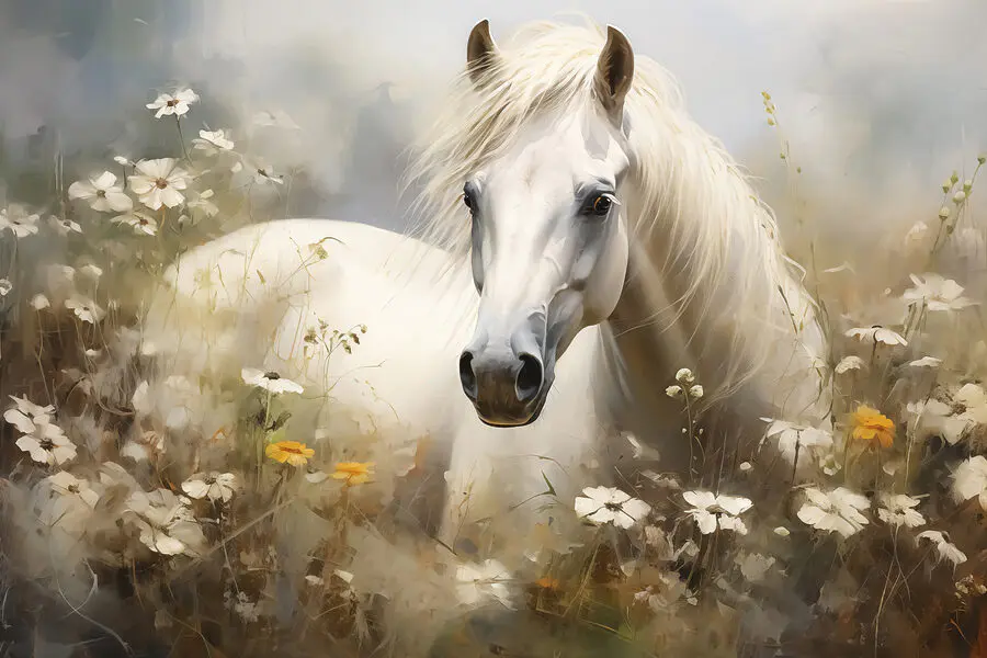 Tablouri Cal alb într-un câmp de flori