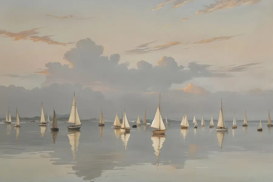 Tablouri Grup de bărci cu pânze pe un corp de apă