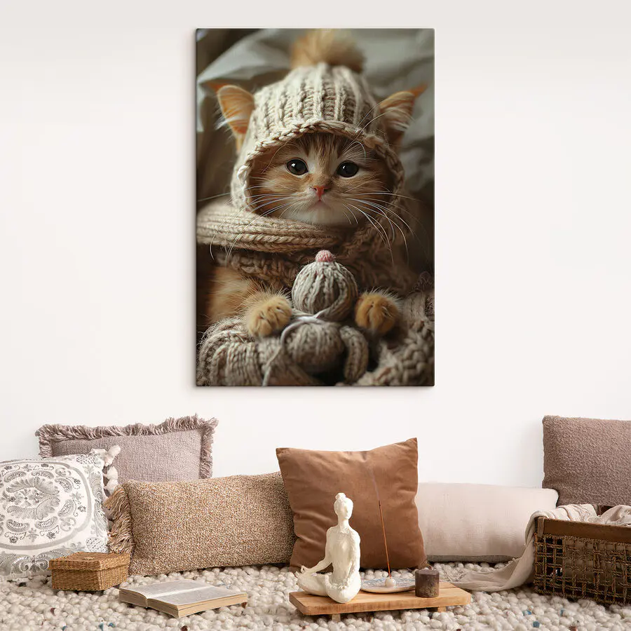 Meet your new favorite wall buddy—a charming canvas featuring a cat cozied up in a knitted hat and scarf. This cute little furball seems like they're just back from a chilly adventure, ready to snuggle by the fire. Imagine this print in your living room: it’d bring a smile every time you walk by. It's like an instant warm hug. Perfect for animal lovers or anyone needing some whimsy with their decor. Unexpected guest? Bet they'll mention your fashionable feline friend—it's quite the conversation starter!