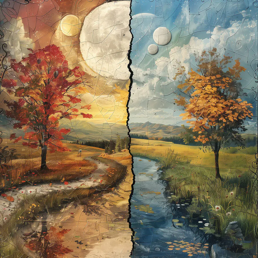 Tablouri Puzzle de un peisaj cu copaci și un râu