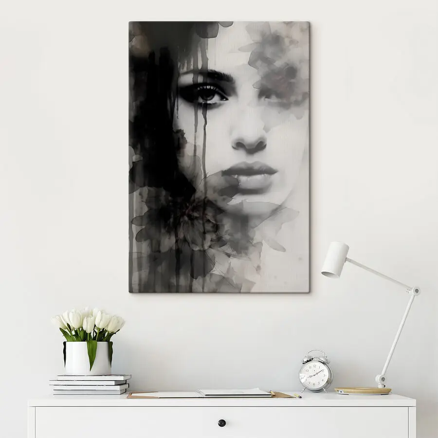 Imaginați-vă asta pe peretele dvs.: este ca și cum arta tocmai a suflat viață în spațiul dvs. Această pânză, "Chip de femeie cu flori", dansează între eleganță și mister - perfectă pentru a stârni un pic de intrigă. Tonuri de alb și negru? Da! Sunt clasice, asigurând că se potrivește oriunde, de la un colț confortabil la un birou inteligent. Este ceva poetic în felul în care ochii ei se întâlnesc cu ai tăi, încadrați de acele flori capricioase. E ca și cum ți-ar cunoaște toate secretele și nu ar scoate niciun cuvânt. Sunteți gata să adăugați o notă de dramatism și farmec? Poftiți!