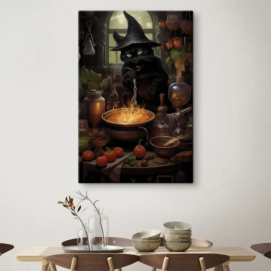 Tablouri Pisică cu pălărie de persoană care gătește o oală de mâncare
