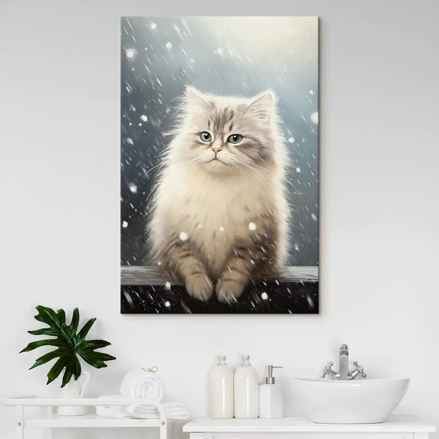 Imaginați-vă o pisică pufoasă, privind spre un tărâm minunat acoperit de zăpadă, ca și cum ar reflecta la sensul vieții (sau doar ar aștepta ca cineva să servească cina). Această imprimare pe pânză "Pisică stând în zăpadă" aduce căldură și farmec în orice spațiu. Acei ochi albaștri izbitori te atrag instantaneu, șoptindu-ți povești despre aventurile jucăușe de iarnă. Perfect pentru iubitorii de pisici sau pentru oricine dorește să adauge o atmosferă confortabilă locuinței sale. Agățați-o în sufragerie și vă veți întreba cum ați trăit vreodată fără ea. O notă de fantezie, un strop de eleganță - este ca și cum ai invita o mică felie de bucurie în viața ta de zi cu zi!