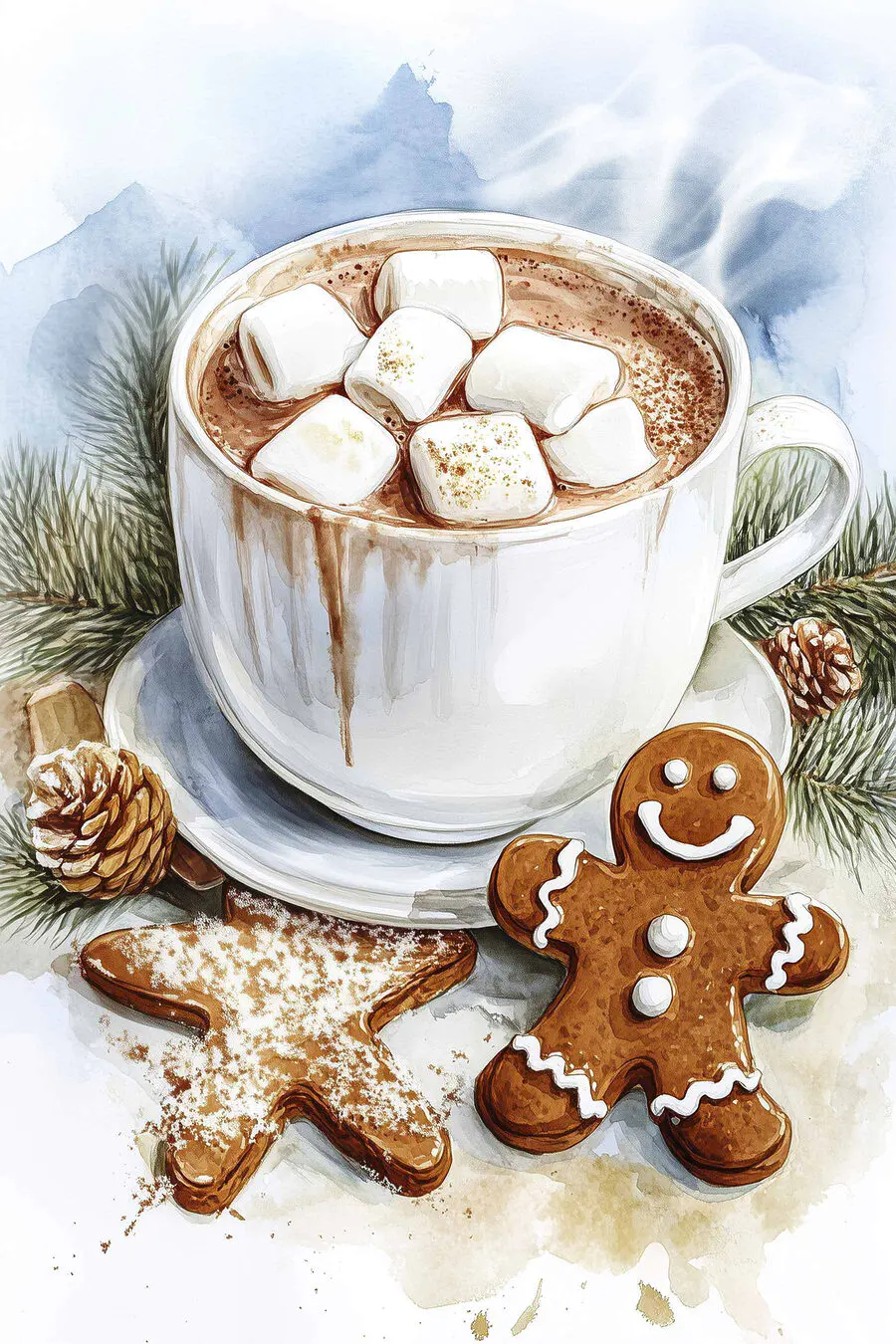 Tablouri Ceașcă de ciocolată caldă cu bezele și fursecuri de turtă dulce