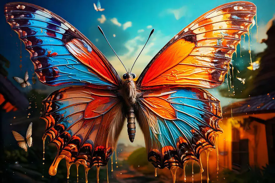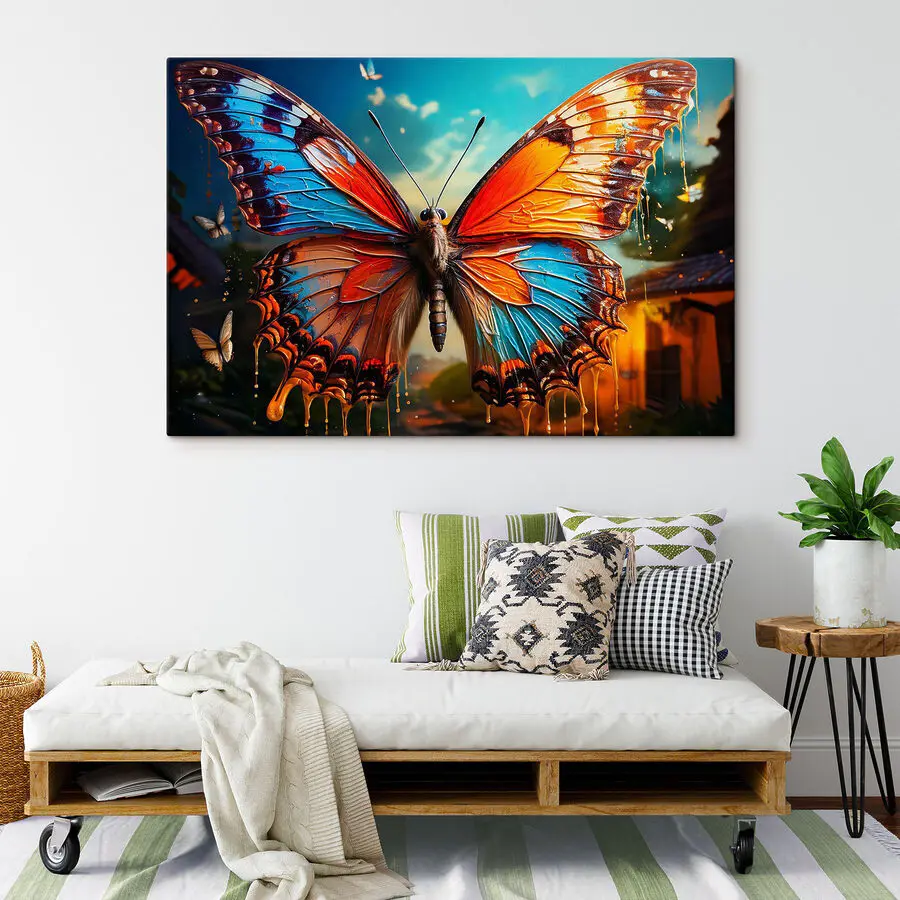 Tablouri Fluture cu aripi portocalii și albastre